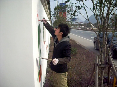 从今年12月初开始,周镇找到当地艺术院校的学生,开始在所有的村墙上做彩绘,十几个人,每天能画出一二百平方米的彩绘,政府每天跟他结账,每天周镇的卡内就有1万多元钱进账。“除去人工、材料等费用,净利润每天有五六千元吧。”周镇对自己的商业机密并不隐讳。