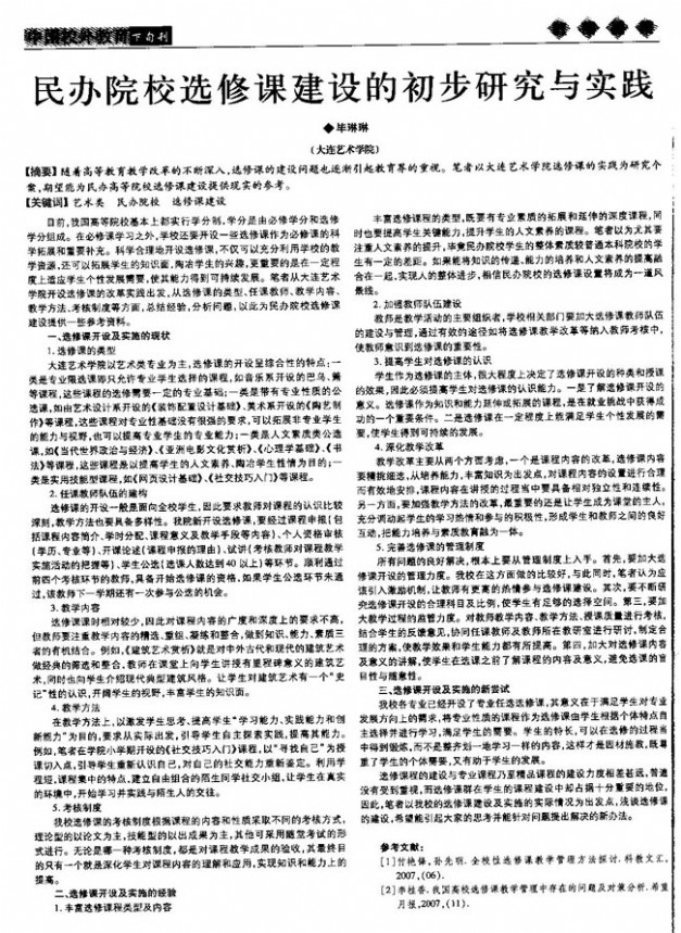 9、毕琳琳,民办院校选修课建设的初步研究与实践,《中国校外教育》2010年下旬刊理论版(2010年1月)。